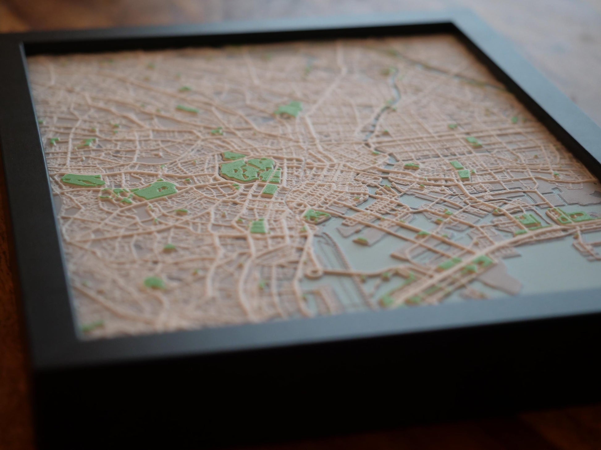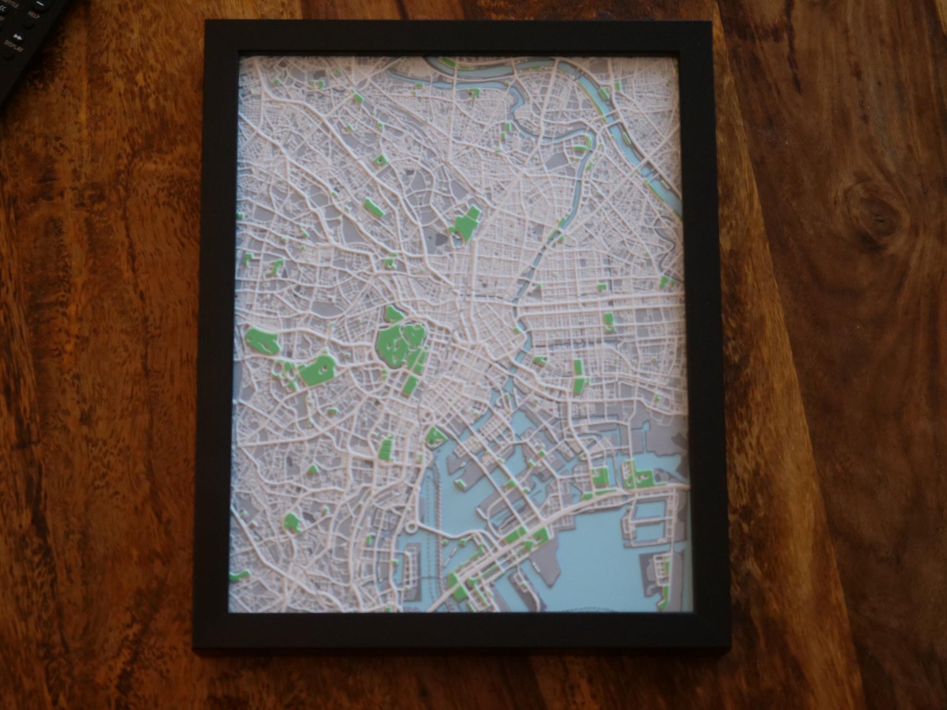 An intricate 3D map of Tokyo, Japan. Framed at 8x10 inches.