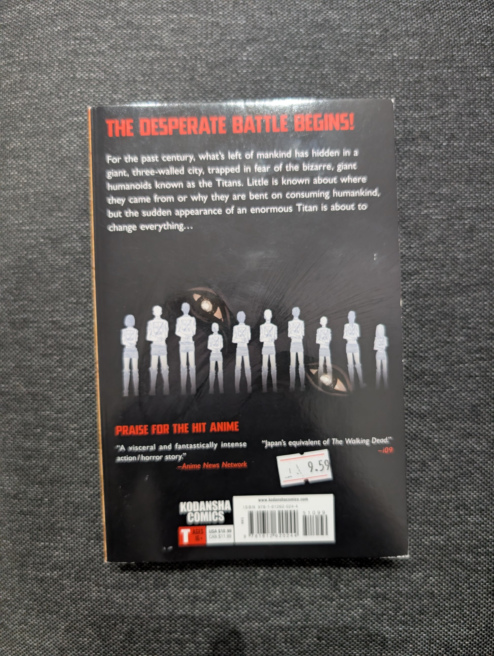 In this post-apocalyptic sci-fi story, humanity has been devastated by the bizarre, giant humanoids known as the Titans. Little is known about where they came from or why they are bent on consuming mankind. Seemingly unintelligent, they have roamed the world for years, killing everyone they see. For the past century, what's left of man has hidden in a giant, three-walled city. People believe their 50-meter-high walls will protect them from the Titans, but the sudden appearance of an immense Titan is about to change everything.