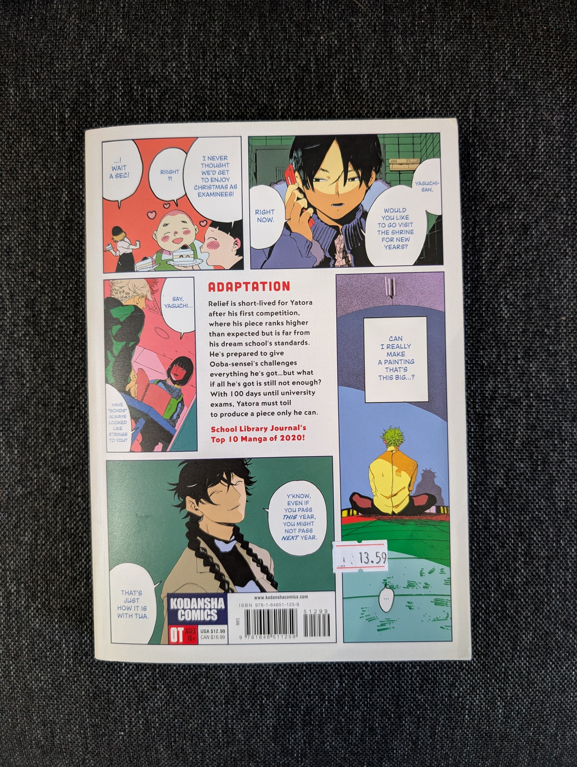 Relief is short-lived for Yatora after his first competition, where his piece ranks higher than expected but is far from his dream school’s standards. He’s prepared to give Ooba-sensei’s challenges everything he’s got…but what if all he’s got is still not enough? With 100 days until university exams, Yatora must toil to produce a piece only he can.