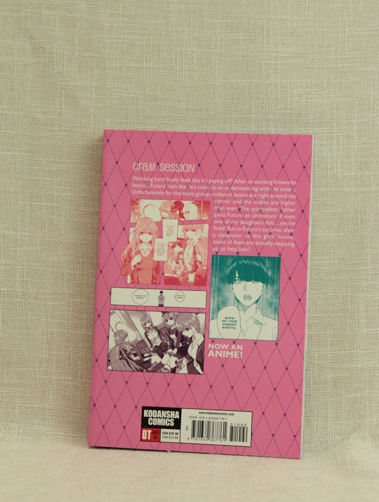 Working hard finally feels like it's paying off! After an exciting fireworks festival, Futaro feels like he's come to an understanding with the sisters. Unfortunately for the study group, midterm exams are right around the corner and the stakes are higher than ever. The quintuplets' father gives Futaro an ultimatum: If even one of my daughters fails...you're fired! But to Futaro's surprise, after a sleepover at the girls' house, some of them are actually stepping up to help him!