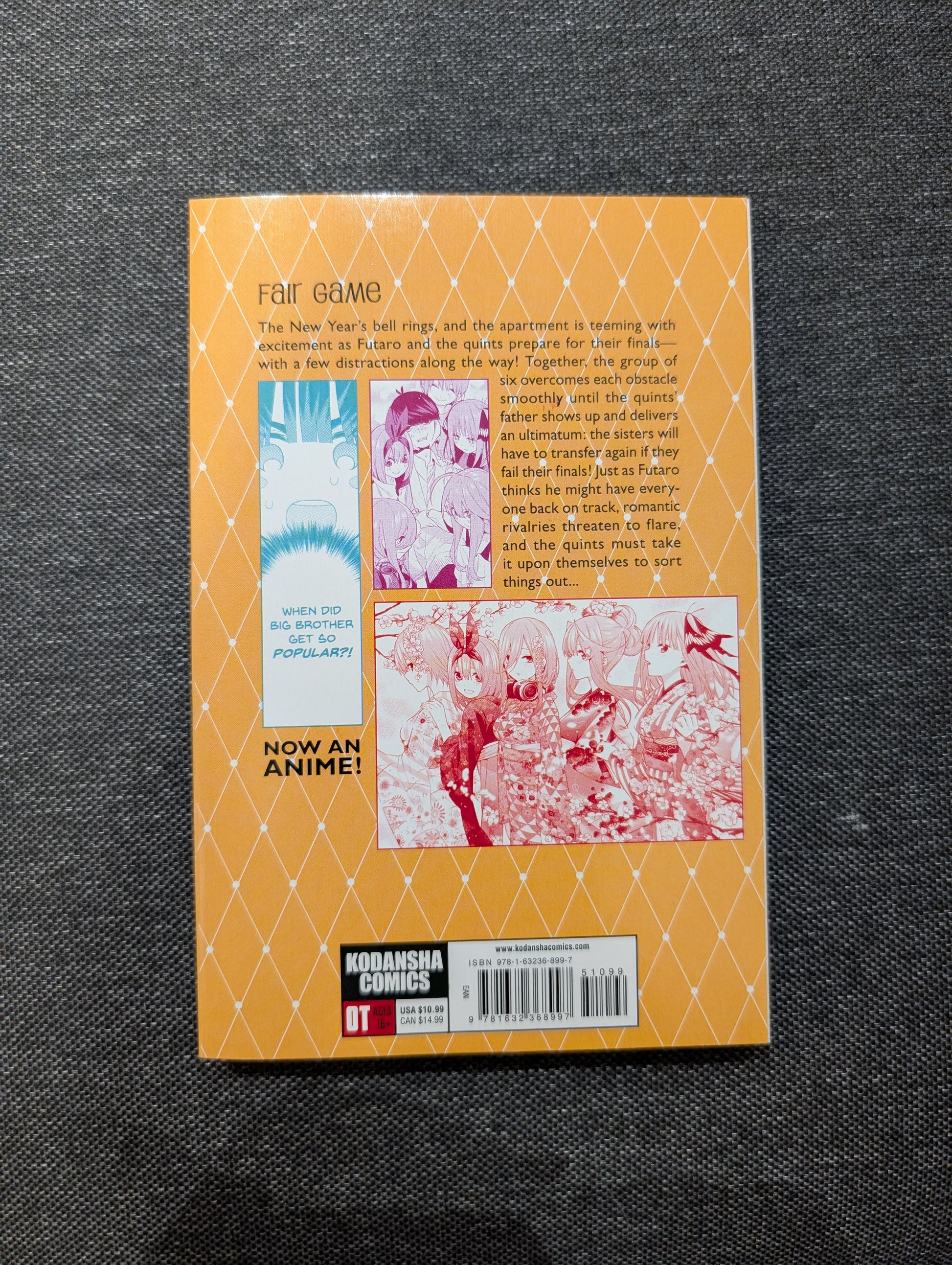A high school romantic comedy with five times the cute girls! A high school boy must work part-time to help five sisters study so they can graduate, but the only thing these quintuplets have in common is that they all hate studying!