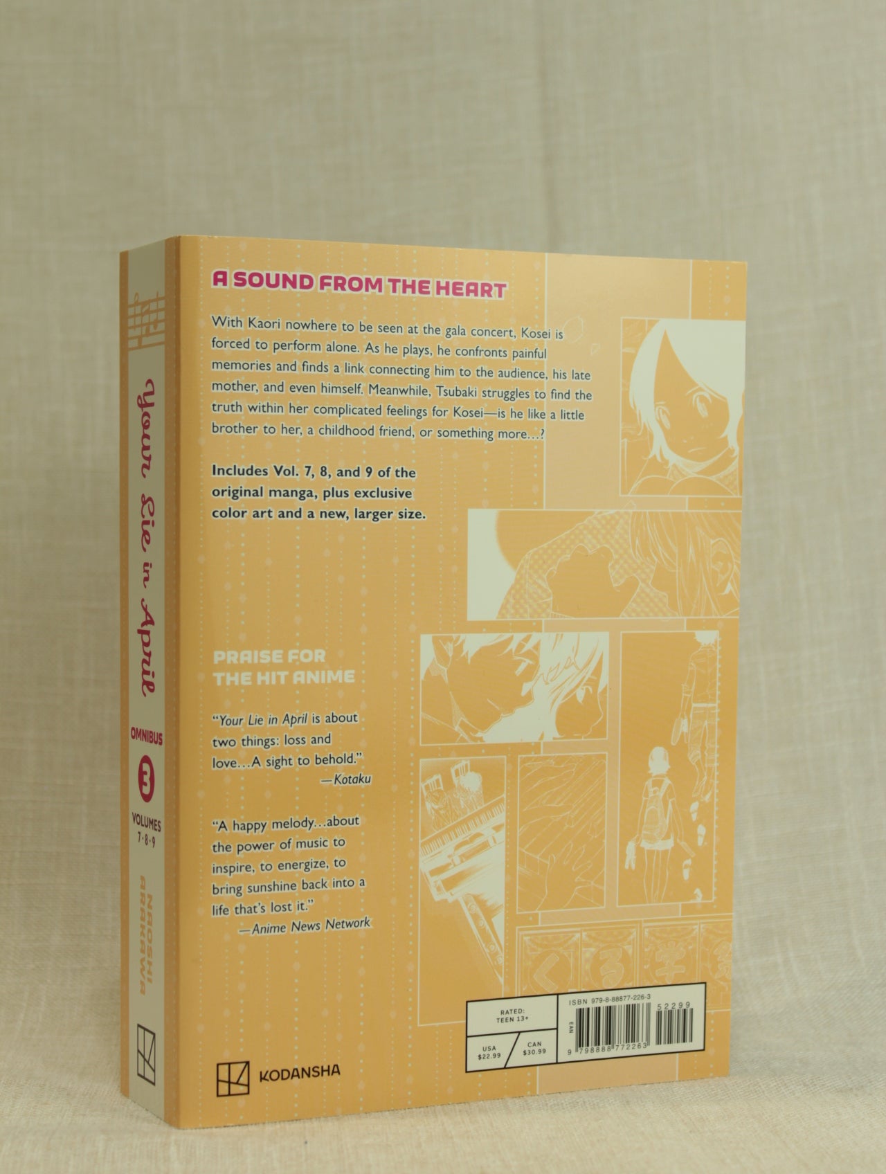 This new, 600-page collectible edition of Your Lie in April includes three full volumes of the original release, newly-published color art, translation notes, and a new, larger size.